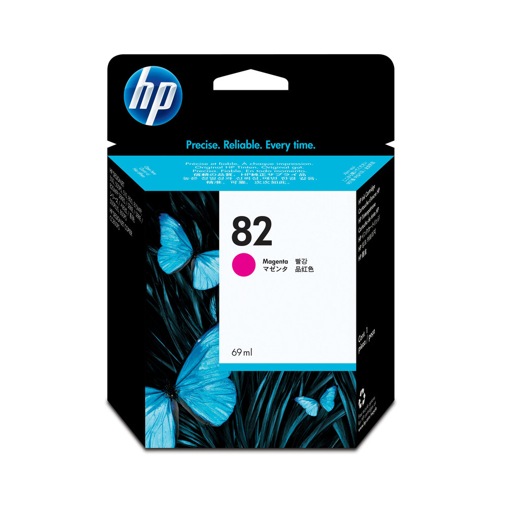Atramentové 69 ml kazety HP 82 sú navrhnuté spolu s tlačiarňou Designjet a veľkoformátovými médiami HP tak, aby dávali kvalitnú a bezproblémovú tlač jasnej a presnej línie. Pomocou originálnych atramentových kaziet HP tlačte v podniku s dôverou.
